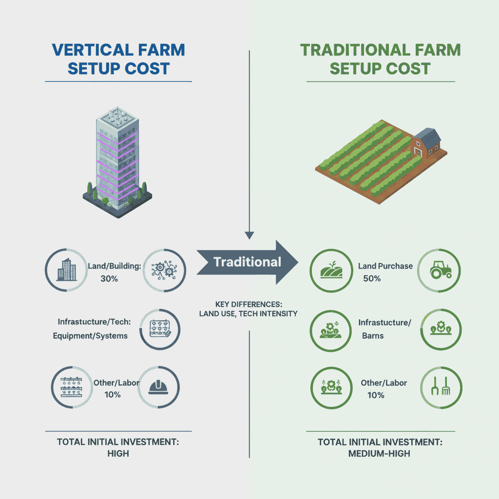 Key Differences between the Vertical Farm Setup & Traditional Farm Setup